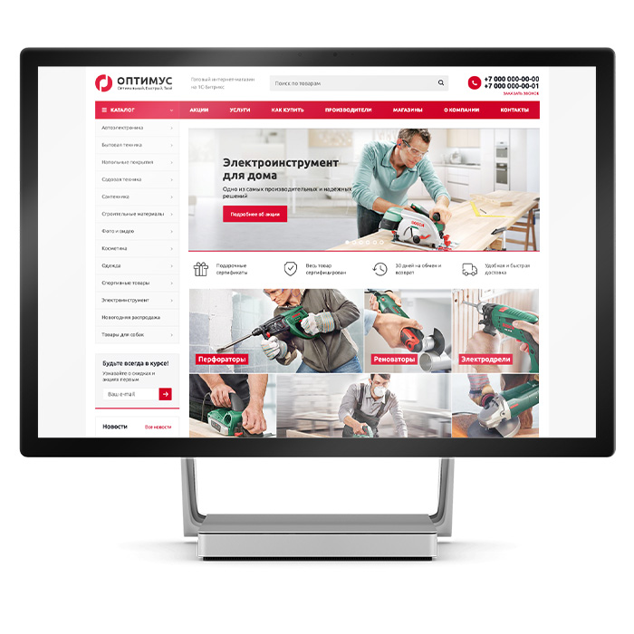 Аспро: Оптимус — универсальное типовое решение для интернет-магазинов любой тематики. Шаблон подойдет для бизнеса: одежда, электроника, детские товары, автоуслуги, мебель и многое другое. Быстрая загрузка сайта, информативный каталог и поддержка торговых предложений. Разработанный с учетом потребностей пользователей интернет-магазин поможет зарабатывать в онлайне!